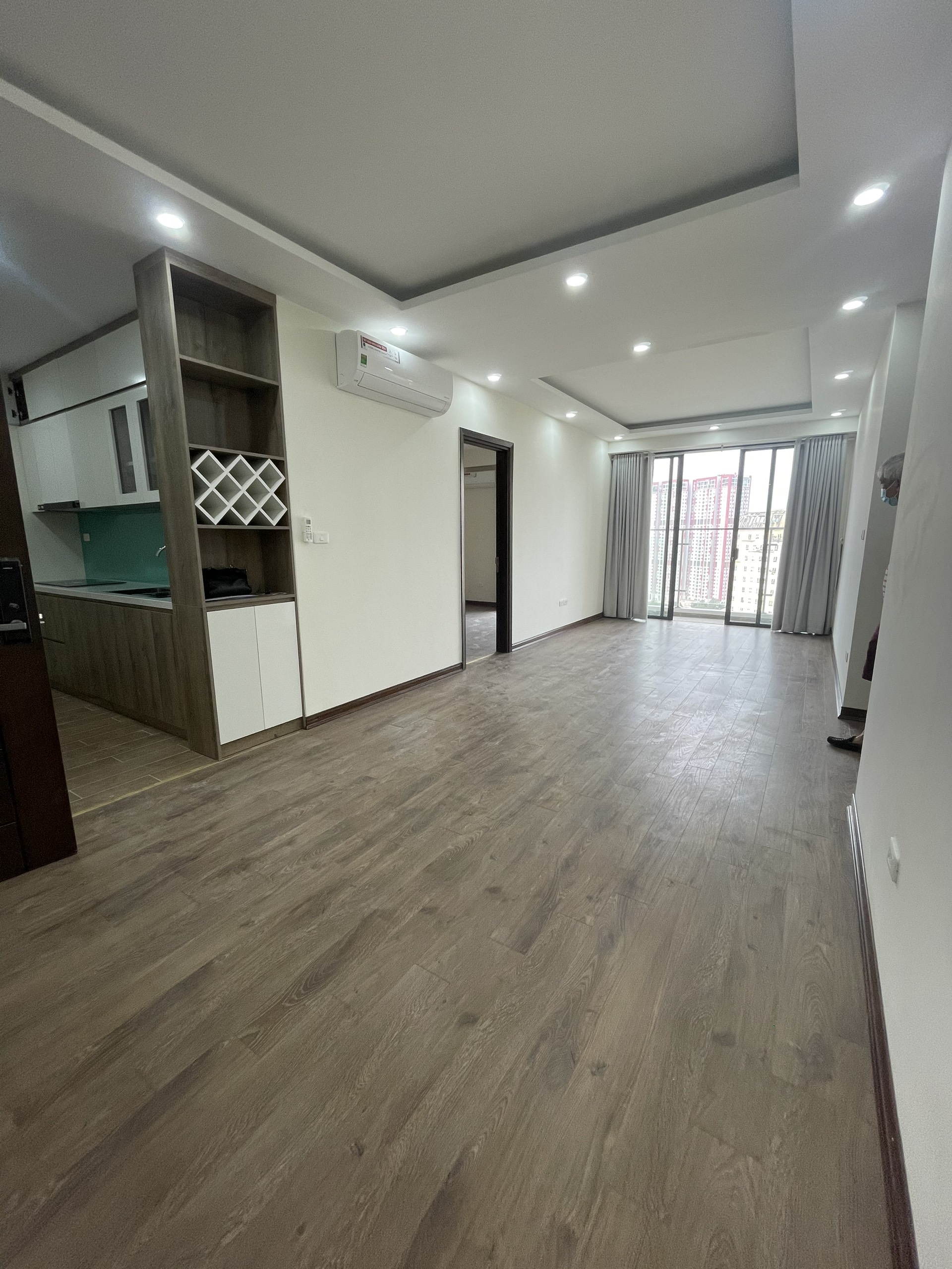 - Hiện đã lắp đủ nội thất cơ bản: điều hòa, thiết bị âm trần, đèn, sàn gỗ, toilet, bình nóng lạnh, tủ bếp, bếp, rèm cửa...