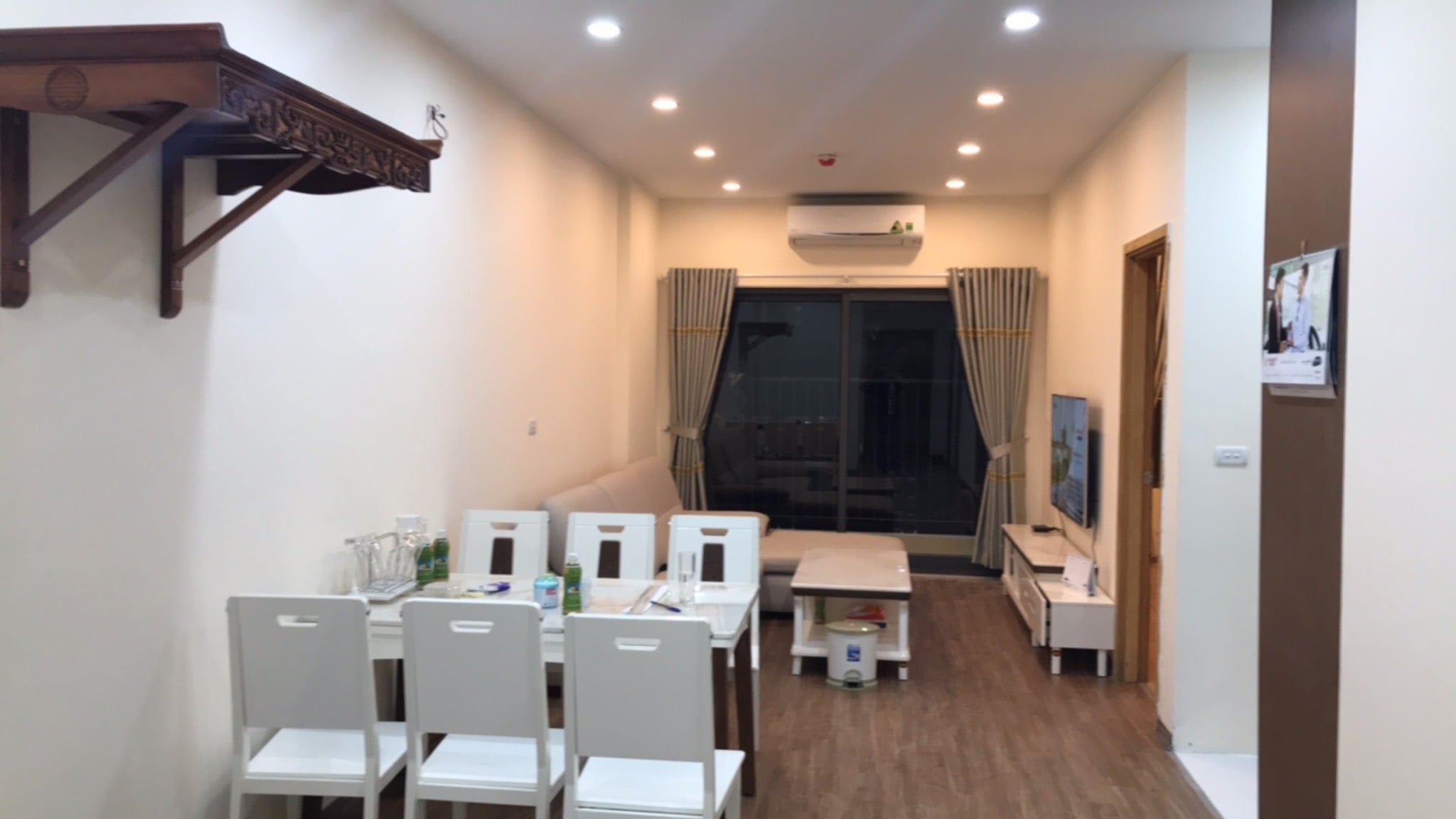 - Diện tích 75m2, căn hộ thiết kế 2 phòng ngủ, đã trang bị đầy đủ nội thất đẹp và sang trọng: Máy giặt, điều hòa, sàn gỗ, nóng lạnh, bếp, tủ bếp, giường, tủ, tivi, tủ lạnh, sofa... Quý khách chỉ việc xách vali quần áo tới ở.