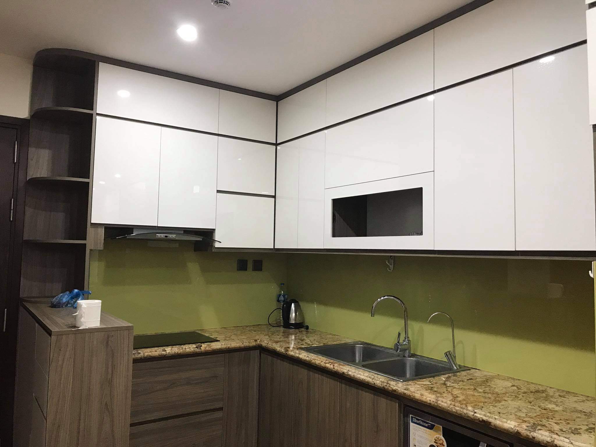 Căn hộ đầy đủ nội thất: giường, tủ, điều hòa, nóng lạnh, tủ bếp, sofa...